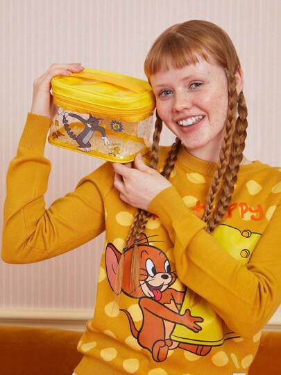 TOM & JERRY X SHEIN Yellow Transparent Cosmetic Bag - Yellow - View 1