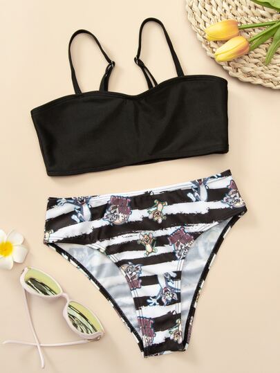 TOM & JERRY X SHEIN Tween Girl Cartoon Graphic Bikini Set Summer Beach - Multicolor - View 1
