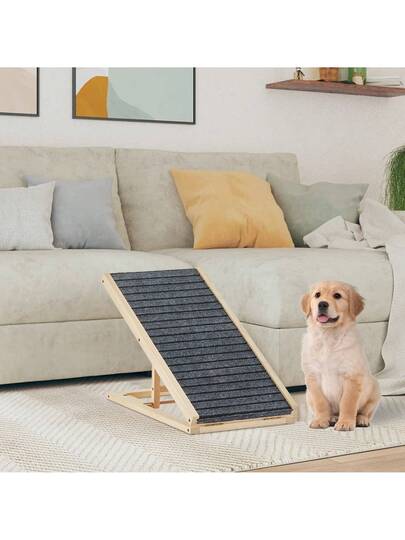 TUKAILAi Dog Ramp For Bed Height Adjustable Folding Pet Ramp With Non-Slip Rug Surface Portable Wooden Dog Steps Stairs For Small Large Animals For Sofa Couch - Apricot - View 1