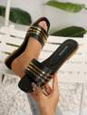 Women's Gold Buckle Decor Round Toe Flat Slippers, Vacation Style Summer Black Glitter Flat Sandals, Comfortable Daily Slip-On Minimalist Versatile Women Flat Sandals