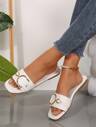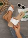 Women's Large Button Decor Flat Slide Sandals, Casual & Comfortable Minimalist Design, Summer White PU Vamp Low Heel Ladies Beach Slippers