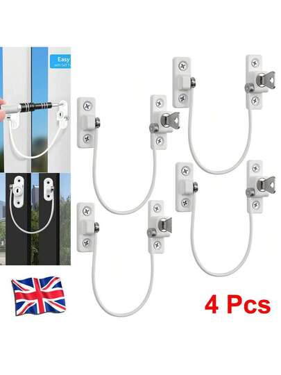 Tapsin 4X Home Windows Door Cable Restrictor Child Baby Safety Security Lock Catch Wire Guard Against Theft Prevent Babies From Falling - Silver - View 4