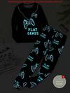 Boys Big Kids Loungewear 2-Piece Set - Black Gaming Mode Letter Print Pajamas Cool Gaming Theme English Slogan Design Black Plaid Contrast Match Comfortable Knit Fabric Long Sleeve Top Plaid Pants Combo Social Media Style E-Sports Gaming Spring Summer Autumn Holiday Essential Boys Big Kids Home Set
