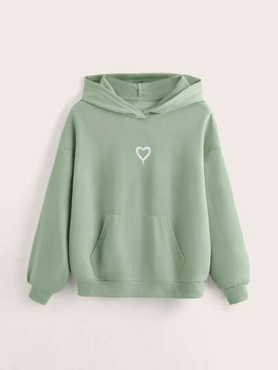 SHEIN Girlism Teen Girl Heart Print Kangaroo Pocket Drop Shoulder Hoodie - Mint Green - View 1