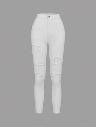 SHEIN Teen Girl Ripped Jeans - White - View 1