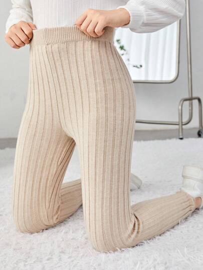 Teen Girl Solid Ribbed Knit Pants - Apricot - View 1