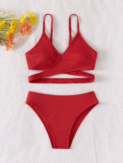 SHEIN Teen Girls Crisscross Front Bikini Set Summer Beach - Red - View 1