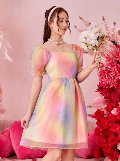Teen Girls' Elegant & Rainbow Color Multicolor Princess Dress - Multicolor - View 1