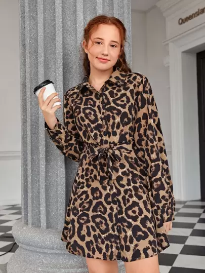 SHEIN Teen Girls Leopard Print Detail Dress - Multicolor - View 1
