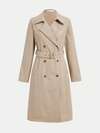 Elegant Snug Fit Commuter Versatile Classic Khaki Lapel Sleeve Cuff Double-Breasted Tie-Waist Windbreaker For Teenage Girls