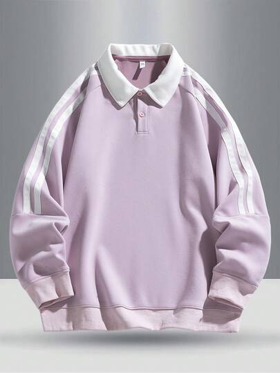 Teens' Outdoor Casual Versatile Contrast Color Strap Decor Fashion High Street Polo Collar Sweatshirt, Spring/Autumn - Purple - View 1