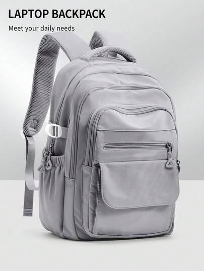 This 15-17 Inch Laptop Backpack Is Unisex, With Multiple Zipper Pockets, Lightweight And Durable, Suitable For School, Business Travel, Water-Resistant Design, Fits 15.6 Inch Laptop - Grey - View 1