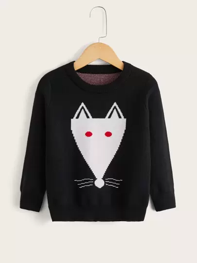 Toddler Girls Cartoon Pattern Jumper - Black - View 1