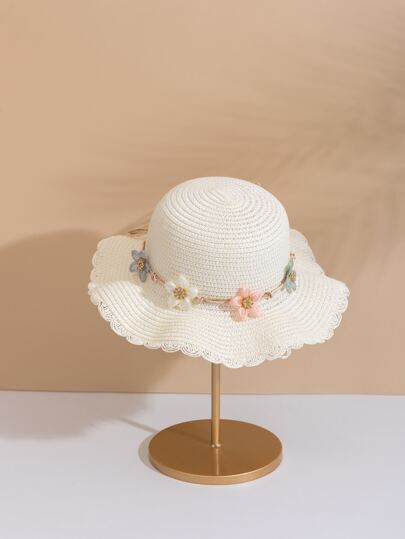Toddler Girls Flower Decor Straw Hat - White - View 1