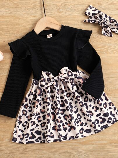 Toddler Girls Leopard Print Ruffle Trim Dress With Headband - Multicolor - View 1