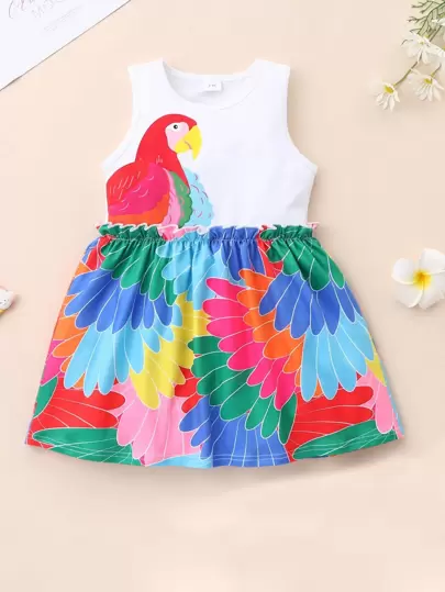 Toddler Girls Parrot Print A-line Dress - Multicolor - View 1