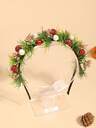 1pc European & American Christmas Red & Green Handmade Faux Pearl Headband, Christmas Bell Beaded Wreath Headpiece, Halloween Party Festival Decoration Hair Accessory For Women, Hair Band, Hair Hoop, Hairband For Women, Autumn Outfits ,Christmas Decorations Home Holiday Essential