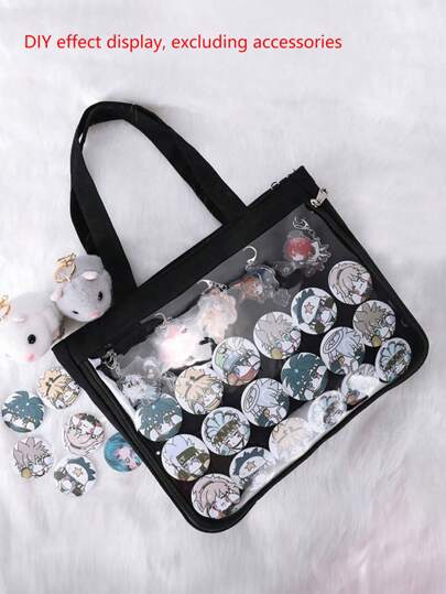 Tote Bag Clear Window for Pins Shoulder Bag Handbag Bag DIY, Cosplay Tote Bag - Black - View 1