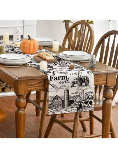 Tractor Milk Farm Tablecloth, Cow House Autumn Kitchen Dining Table Decor For Home Party Outdoor - Black - View 6