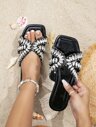 New Fashion Women's Rhinestone Flat Sandals, Casual Bohemian Beach Party Style, Comfortable Anti-Slip Outdoor Plus Size Sandals With 'One' Toe Strap Valentines