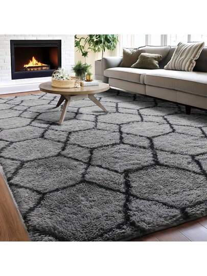 Treeboy Fluffy Rugs Living Room, Grey Area Rugs For Bedroom, Washable Anti Slip Large Shaggy Soft Rug Fluffy Modern Carpets Mat Beside Area Rug For Living Room Kids Room - Grey & Black - View 1