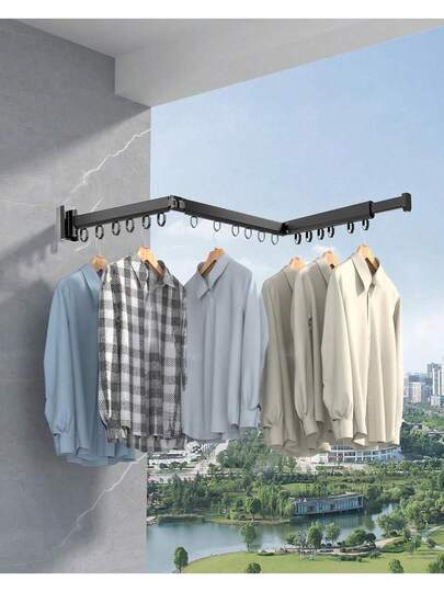 Tri Fold Clothing Rack With Extended Arm Expandable Clothes Drying Rack Collapsible Hanging Clothes Rack Wall Mount Hanger Dryer Rack Space Saver For Laundry Room Balcony Apartment - Black - View 1