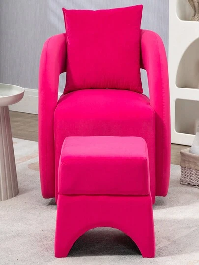 Velvet Accent Chair With Footstool Medieval Modern Lazy Chair With Armrests And Backrest Single Sofa Armchair Upholstered Reading Chair For Living Room Bedroom Dorm Rooms Office - Pink - View 1