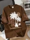 1 Piece Teen Style City Vacation Teen T-Shirt For Boys, "LA+Palm Tree" Pattern Style, Soft And Comfortable Fabric, Suitable For Spring And Summer Daily Casual Outings Campus Wear Cool Personality Style