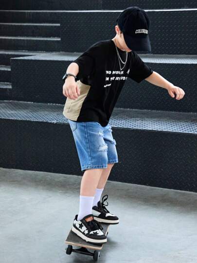 SHEIN Tween Boys Printed Cool T-Shirt - Navy Blue - View 1