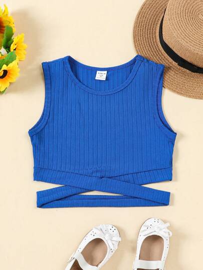 Sparklyn Tween Girl Casual Basic Street Style Criss-Cross Hem Crop Tank Top,Holiday,Summer,Travel - Blue - View 1