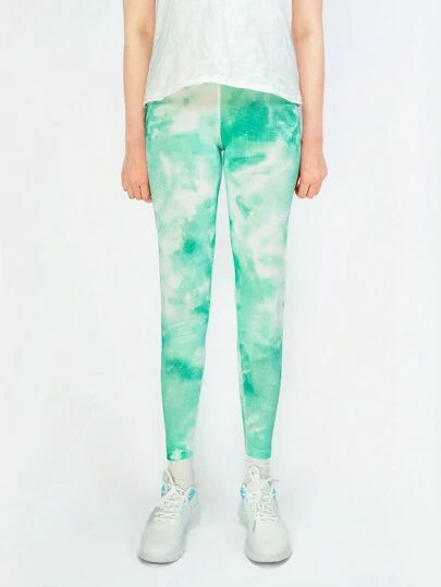 SHEIN Tween Girls Tie Dye Active Tights For Dailywear - Mint Green - View 1