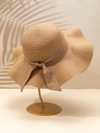 Skinny Scarf Decor Straw Hat - Khaki - View 1