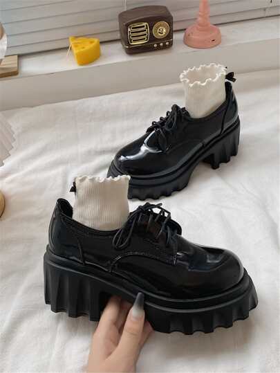 Two Tone Lace-up Front Platform Oxford Shoes - Black - View 1