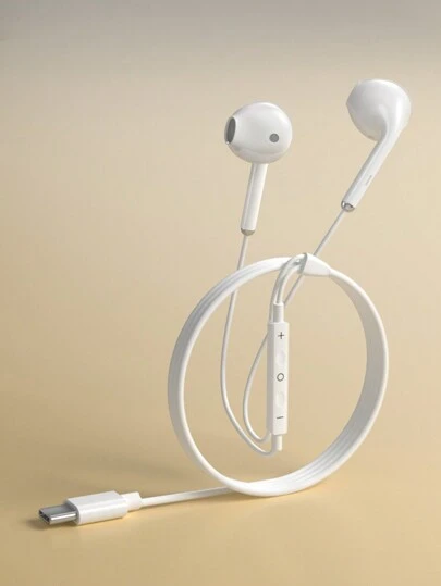Type-C In-Ear Wired Headphones With Microphone And Remote Control, Clear Voice Calling, Compatible With IPhone, 3.5mm Phones - White - View 1