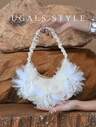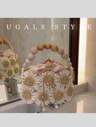 Valentine's Day Oval Shaped Fabric Crochet Flower Bag Women's Evening Clutches Bags Bridal Wedding Purse Party Prom Hand Woven Beaded Faux Pearl Half Moon Handbag, Elegant Pearl Clutch, Prom Bag