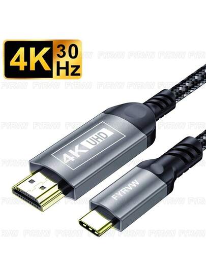USB C To HDTV-Compatible Cable 4K Type C To HDTV-Compatible With Pro Air IPad Pro Smartphone TV 15 To 4K HDTV Cable - Grey - View 1