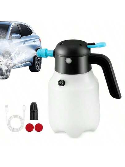 USB-Rechargeable Foam Sprayer – 1.8L Car Battery Sprayer With 2 Modes & 3 Spray Types | Auto-Pressurize For Effortless Car Washes - Black and White - View 1