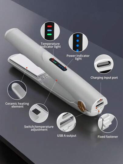 USB Rechargeable Wireless Mini Hair Straightener, Portable Ceramic Flat Iron With LED Display And PTC Heating Plate, Suitable For Home, Car And Outdoor Use - Multicolor - View 1