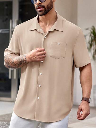 EASEVO Woven Casual Short Sleeve Shirt, Plus Size Mocha Mousse Shirt For Men - Khaki - View 1