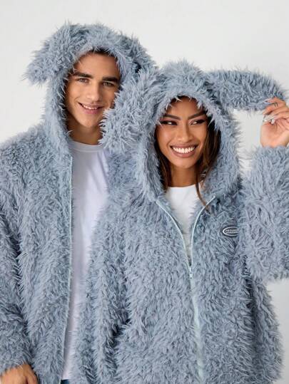 Manfinity VCAY Lion Pattern Loose Fit Hooded Long Sleeve Jacket Outerwear, Baby Blue Going Out Zipper Jacket, Suitable For Autumn/Winter Season, Friends, Husband, Boyfriend Gifts - Baby Blue - View 5