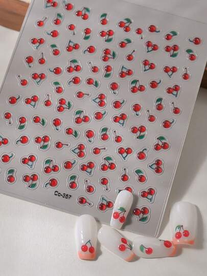 1pc 5D Red Cherry Nail Stickers Decorative Stickers Cute Jelly Embossed Self Adhesive Nail Stickers Decorative Design DIY Nail Stickers - Red - View 1