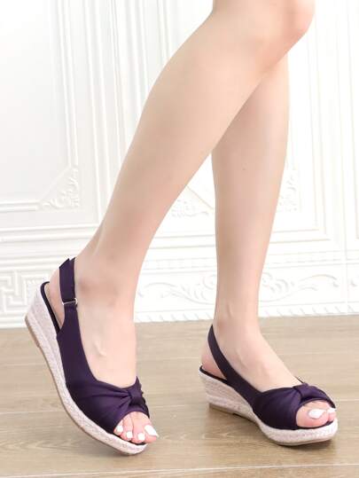 Vacation Purple Slingback Wedge Sandals Women Ruched & Knot Decor Espadrille Sandals - Mauve Purple - View 1