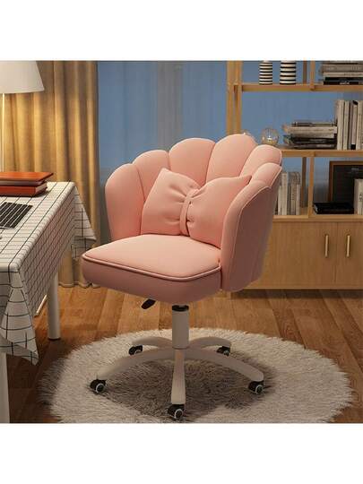 Vanity Chair Velvet Petal Desk Chair Upholstered Modern Tufted Home Office Chair With Back, Height Adjustable Computer Task Chair For Bedroom Living Room - Pink - View 1
