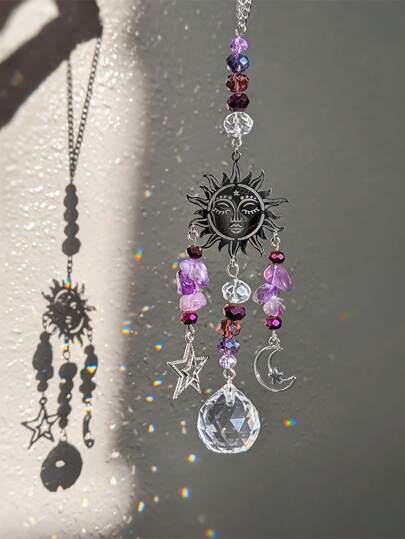 1pc Purple Amethyst Moon Goddess Dreamcatcher, Celestial Purple Amethyst Moon & Stars, Decoration, Car Decor, Holiday Event Party Decor, Holiday Gift Festival Decoration, Home Decor, Room Decor, Wall Decor Gifts Birthday Graduation E-I-D - Multicolor - View 11