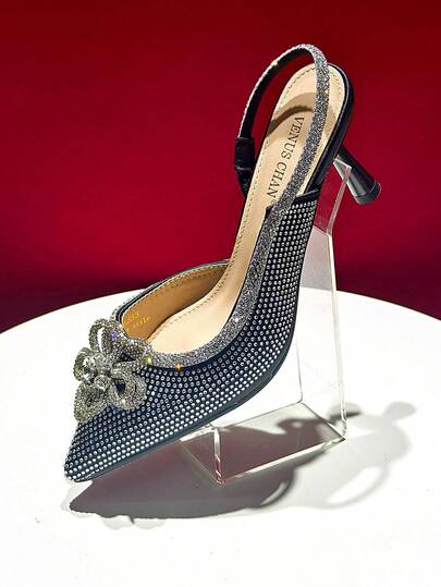 Venus Chan 2025 Women's Elegant Pointed-Toe High Heel Sandals With Rhinestones For Parties And Weddings - Black - View 1