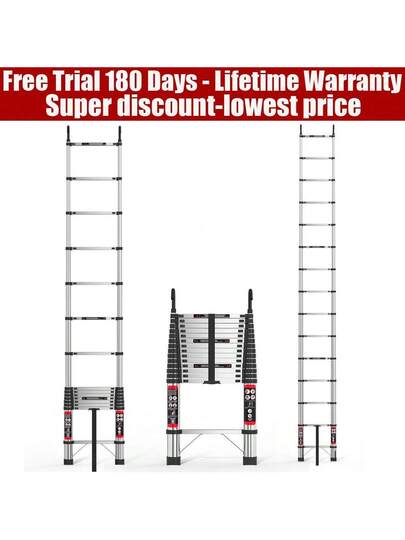 VickyHome 2025-NEW 5m/16.4ft Telescoping Ladder Aluminum Lightweight Portable Extendable Extension Step Attic Ladder For Multipurpose, 150kg Capacity 11 Steps - Silver - View 12