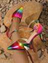 Summer New Rainbow Satin High-heel Shoes, Pointed & Hollow Out, Versatile Women's Shoes