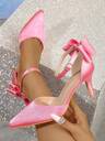 Burgundy Satin Bow Pointed Toe Ankle Strap High Heel Shoes For Women, Spring/Autumn