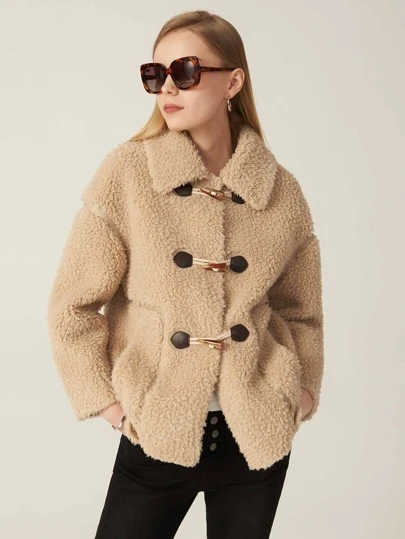 MOTF PREMIUM WOOL-MIX TEDDY DUFFLE COAT - Khaki - View 1