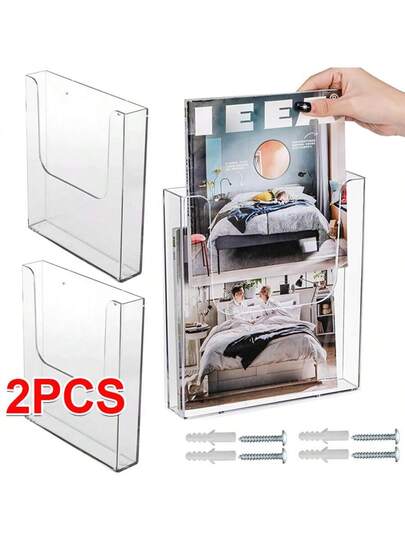Wall Mounted Rack Paper Organiser .Office Document Holder Clear Acrylic A4 - White - View 1